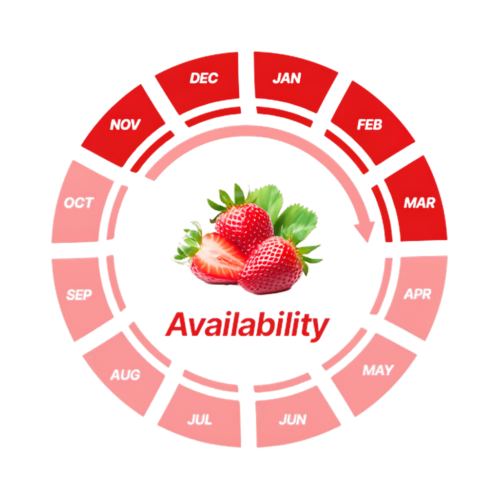 Les périodes et la saison pendant lesquelles nos fraises sont disponibles garantissent, à chaque récolte, une fraîcheur optimale et une douceur naturellement savoureuse, pour sublimer vos recettes et tous vos moments gourmands.