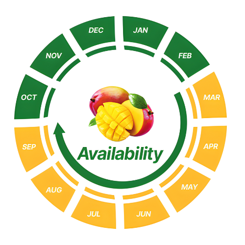Voici les périodes et la saison pendant lesquelles nos mangues sont disponibles, offrant à chaque récolte une fraîcheur optimale et une saveur naturellement onctueuse, pour sublimer vos recettes et vos moments gourmands.