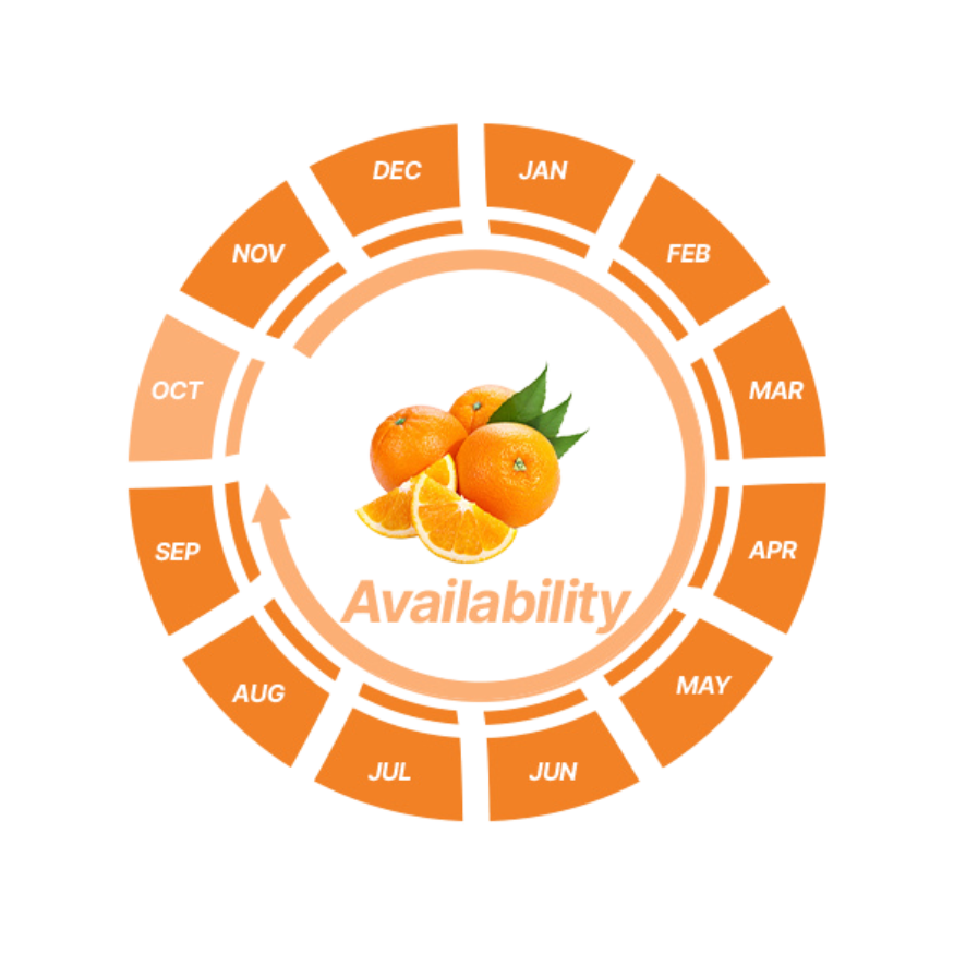 Voici les périodes et la saison pendant lesquelles nos oranges sont disponibles, offrant à chaque récolte une fraîcheur optimale et une saveur naturellement onctueuse, pour sublimer vos recettes et vos moments gourmands.